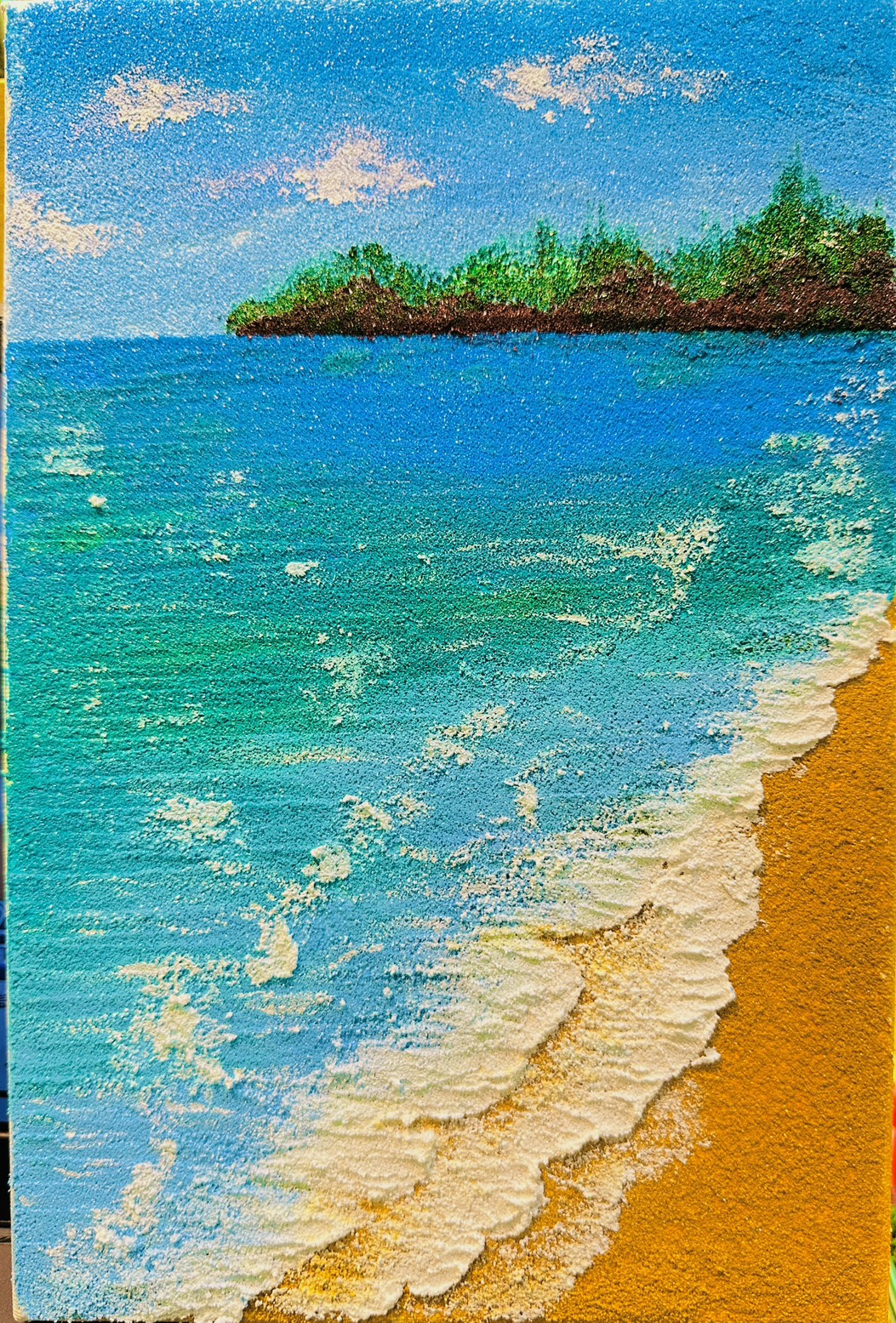 (四) | 工作坊介紹:一起走入藝術療癒的旅程!本工作坊以「療癒複合媒材創作-聽海的聲音」為主題,帶領老師運用石英砂肌理畫體驗創作的美感與觸感。透過材質的堆疊與色彩的流動,傾聽內心深處的聲音,在藝術表達中培養情緒覺察與表達能力。 |