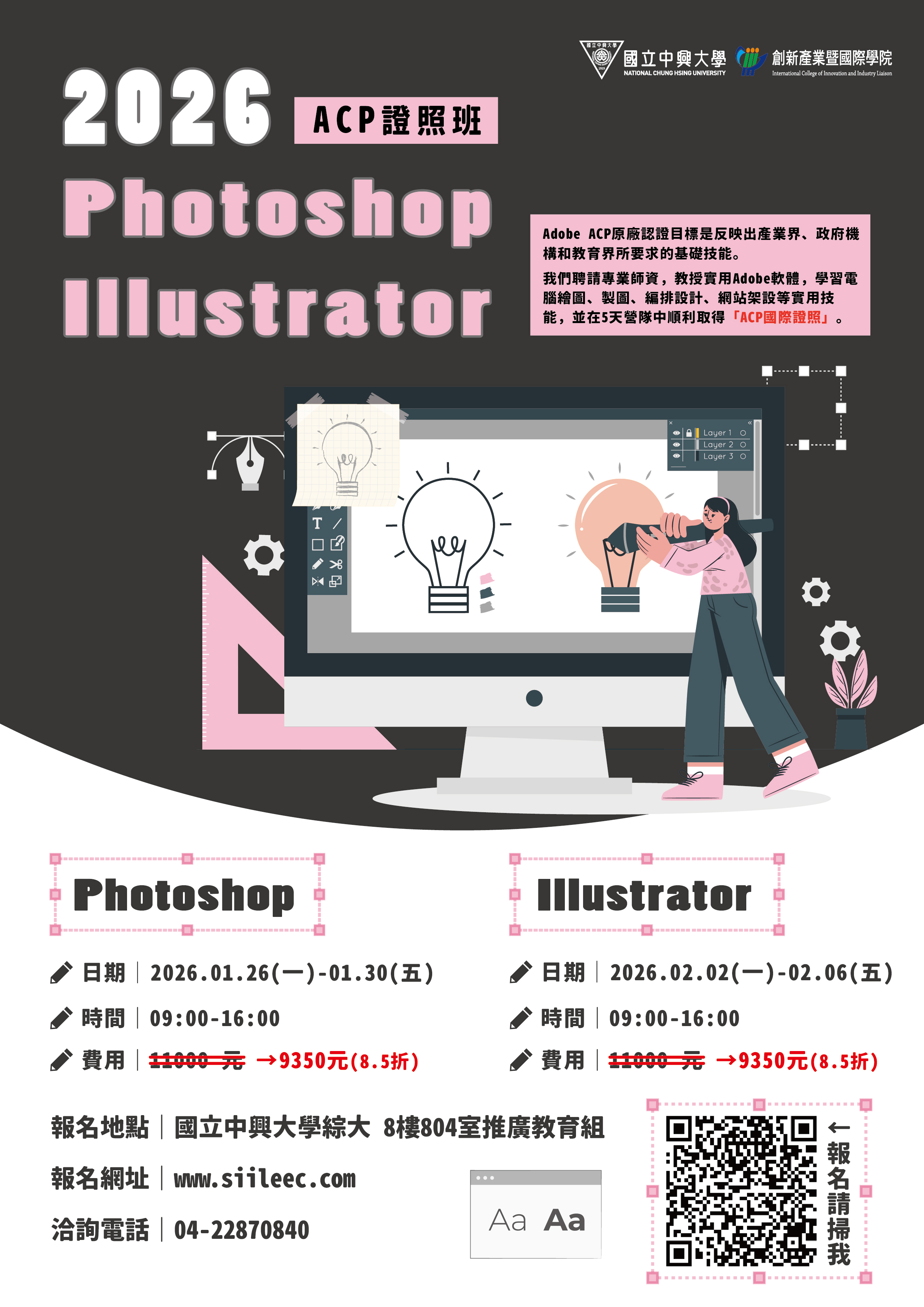 ACP國際證照-Illustrator:2月2日至6日五日營。 |