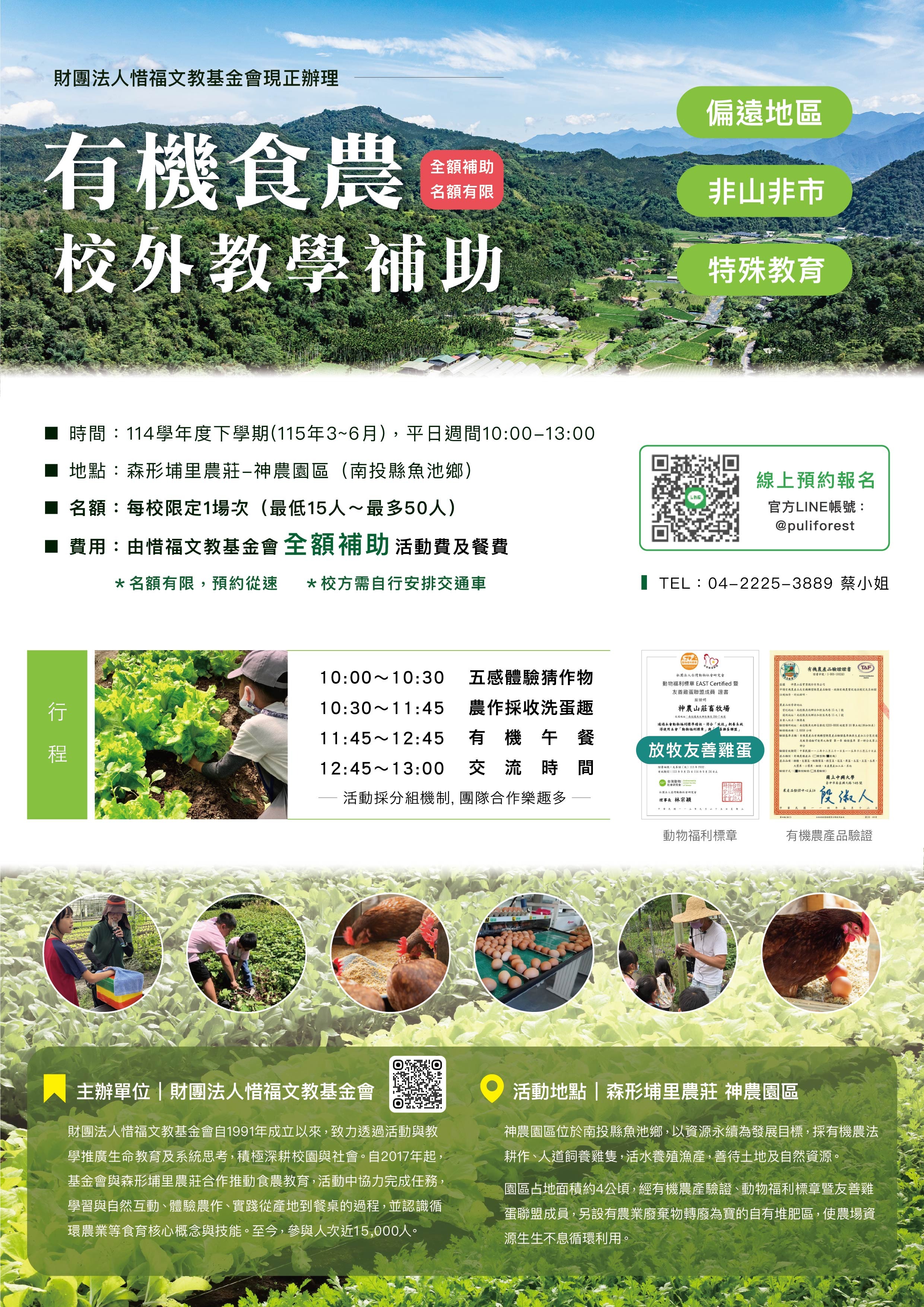 縣府轉知有關財團法人惜福文教基金會「有機食農-校外教學補助」計畫,請查照。