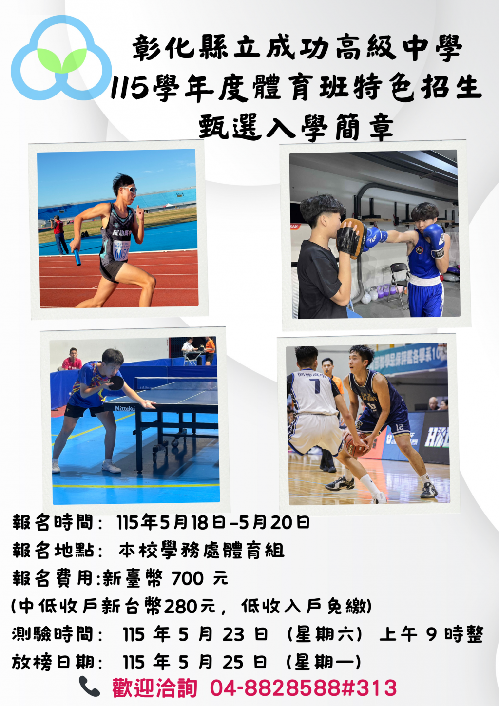 ★相關問題,請電話洽詢04-8828588#313 體育組。
