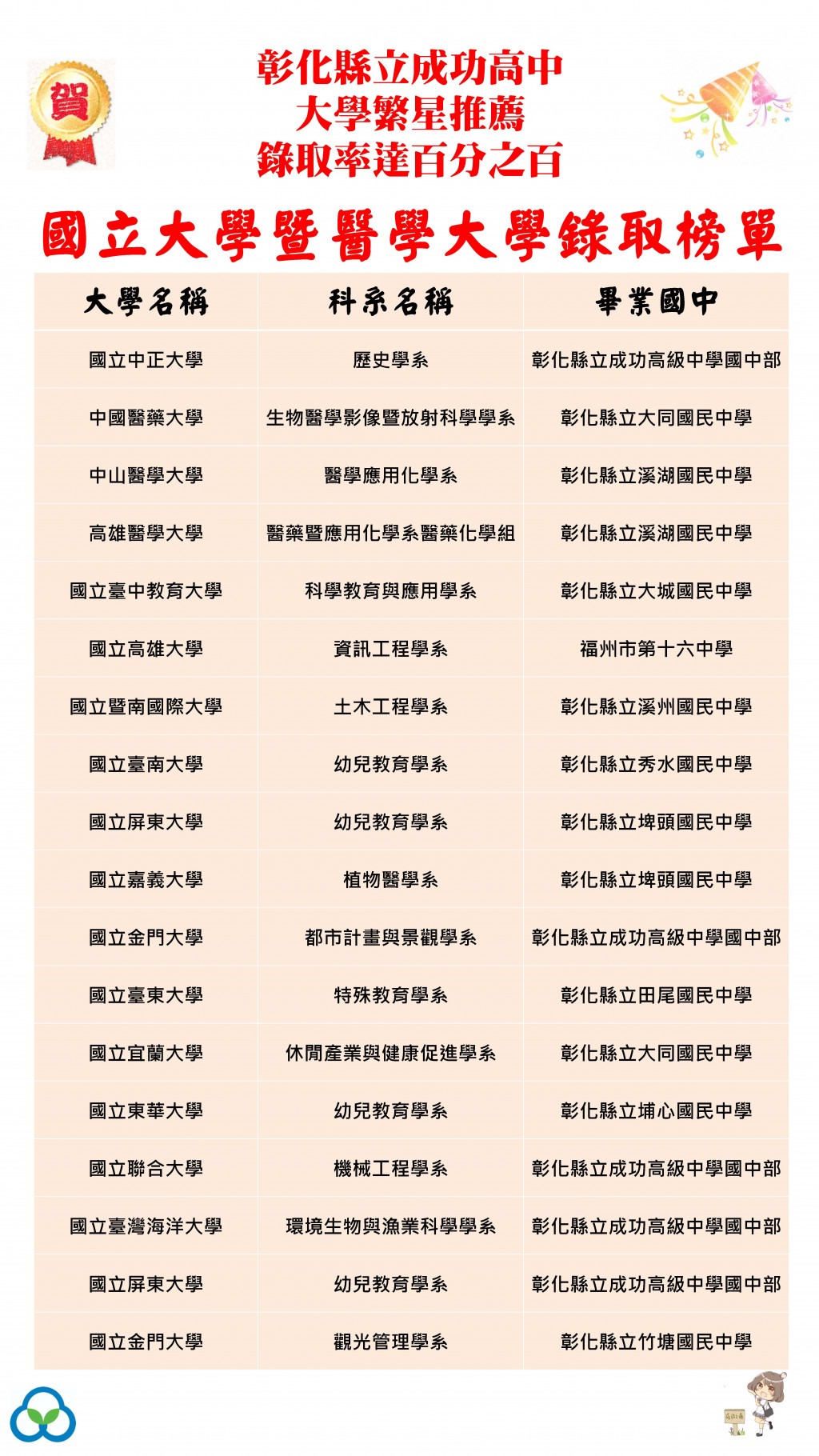 全數上榜!!全國第一的佳績!