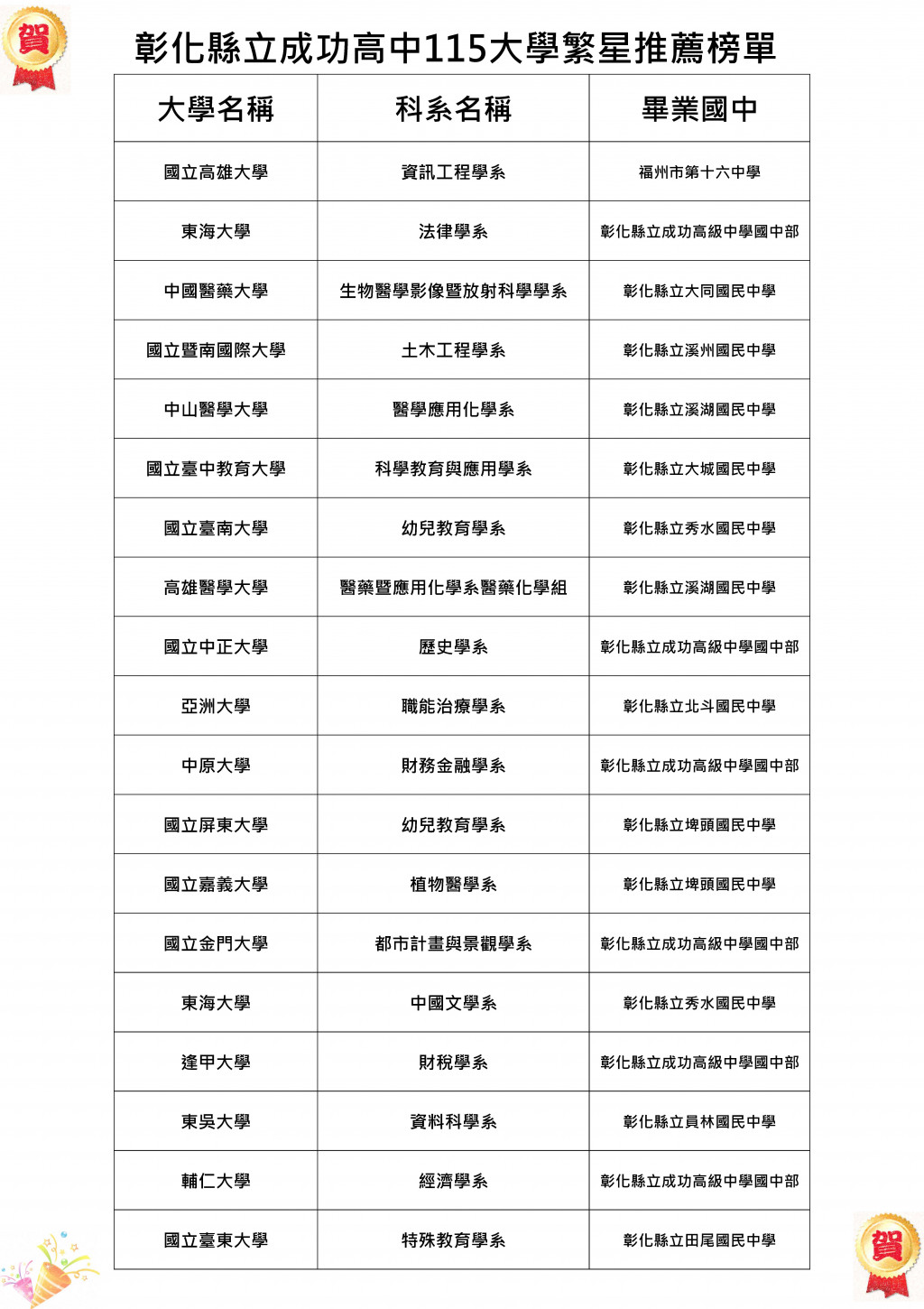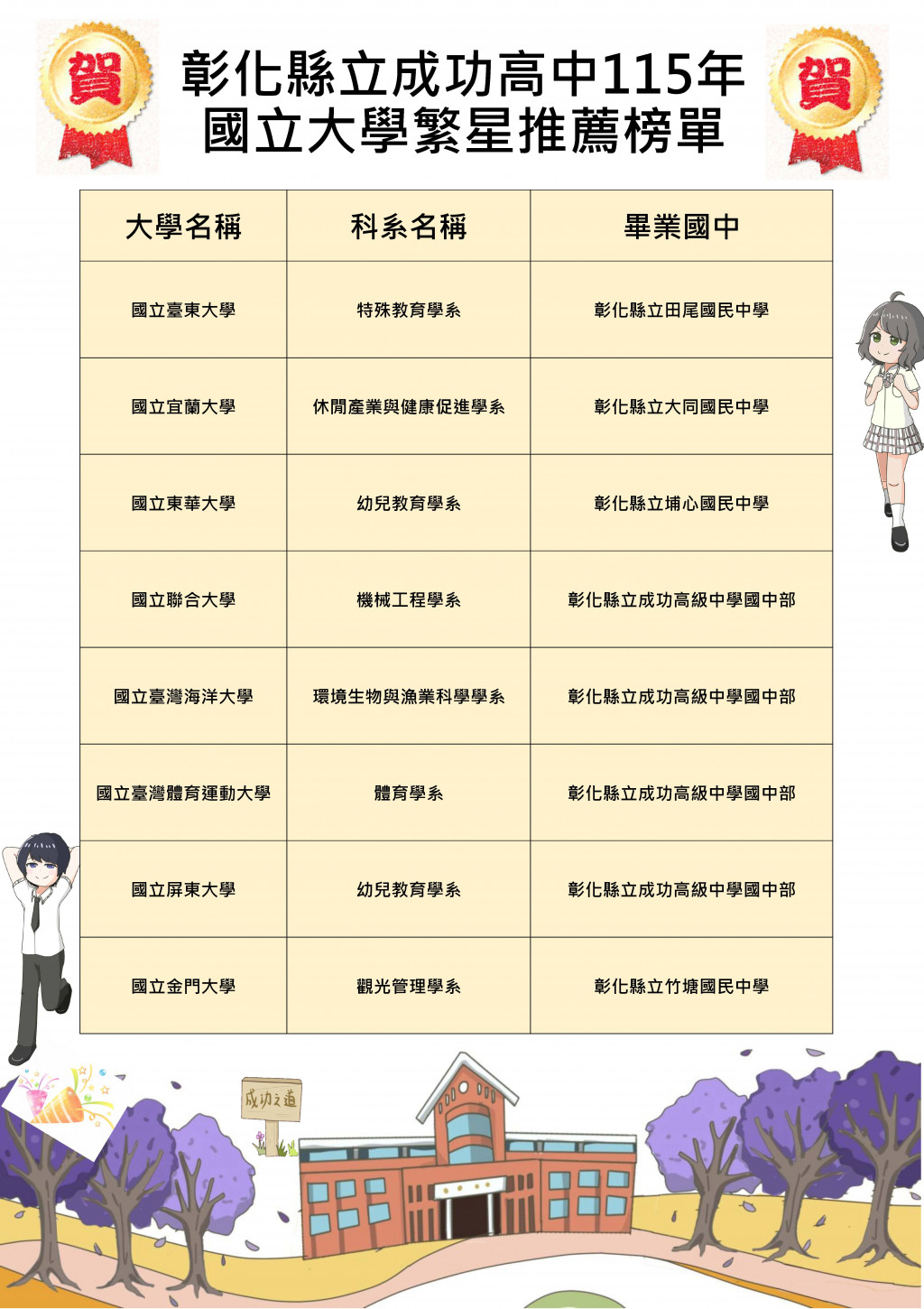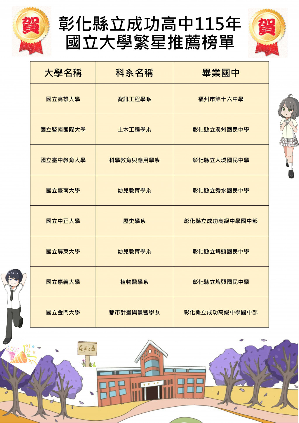 【賀】115年大學繁星放榜,成功高中再創輝煌佳績!