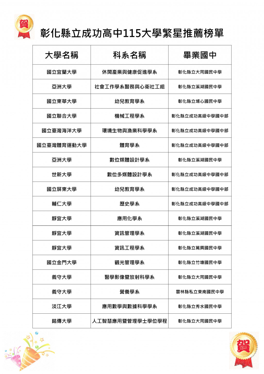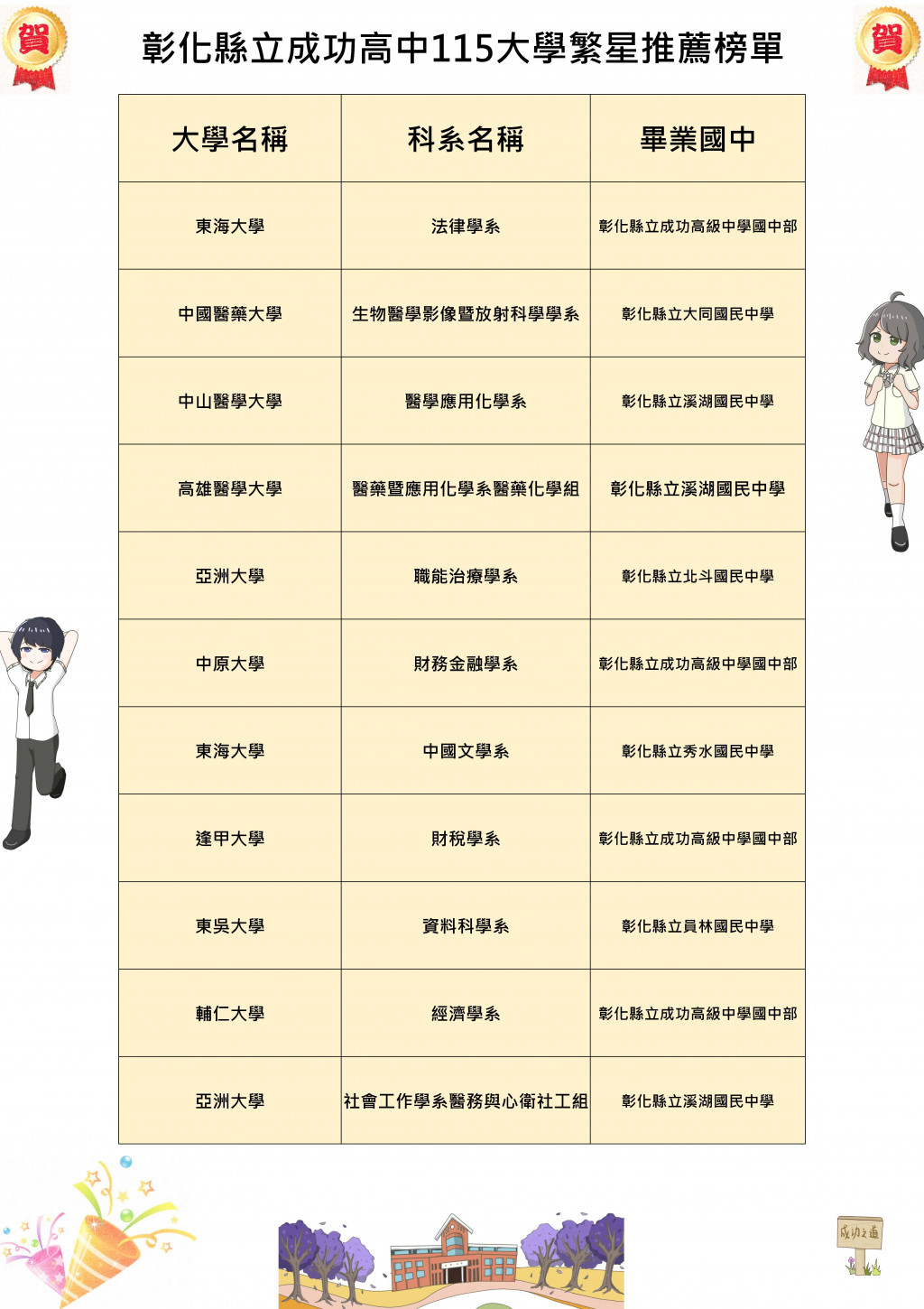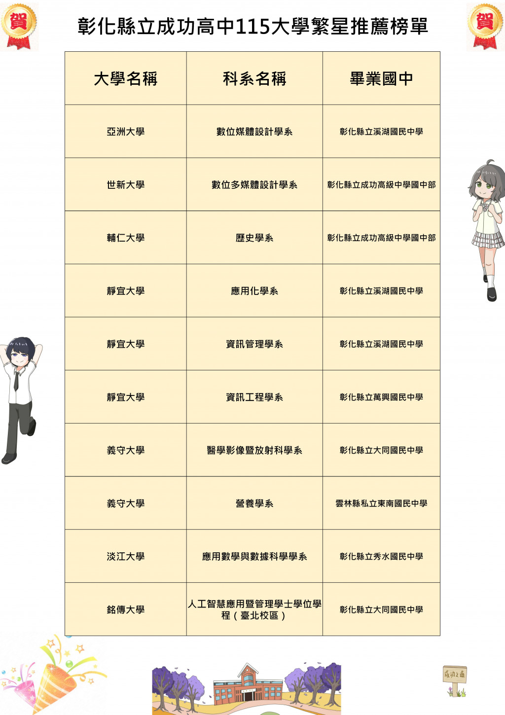 【賀】115年大學繁星放榜,成功高中再創輝煌佳績!