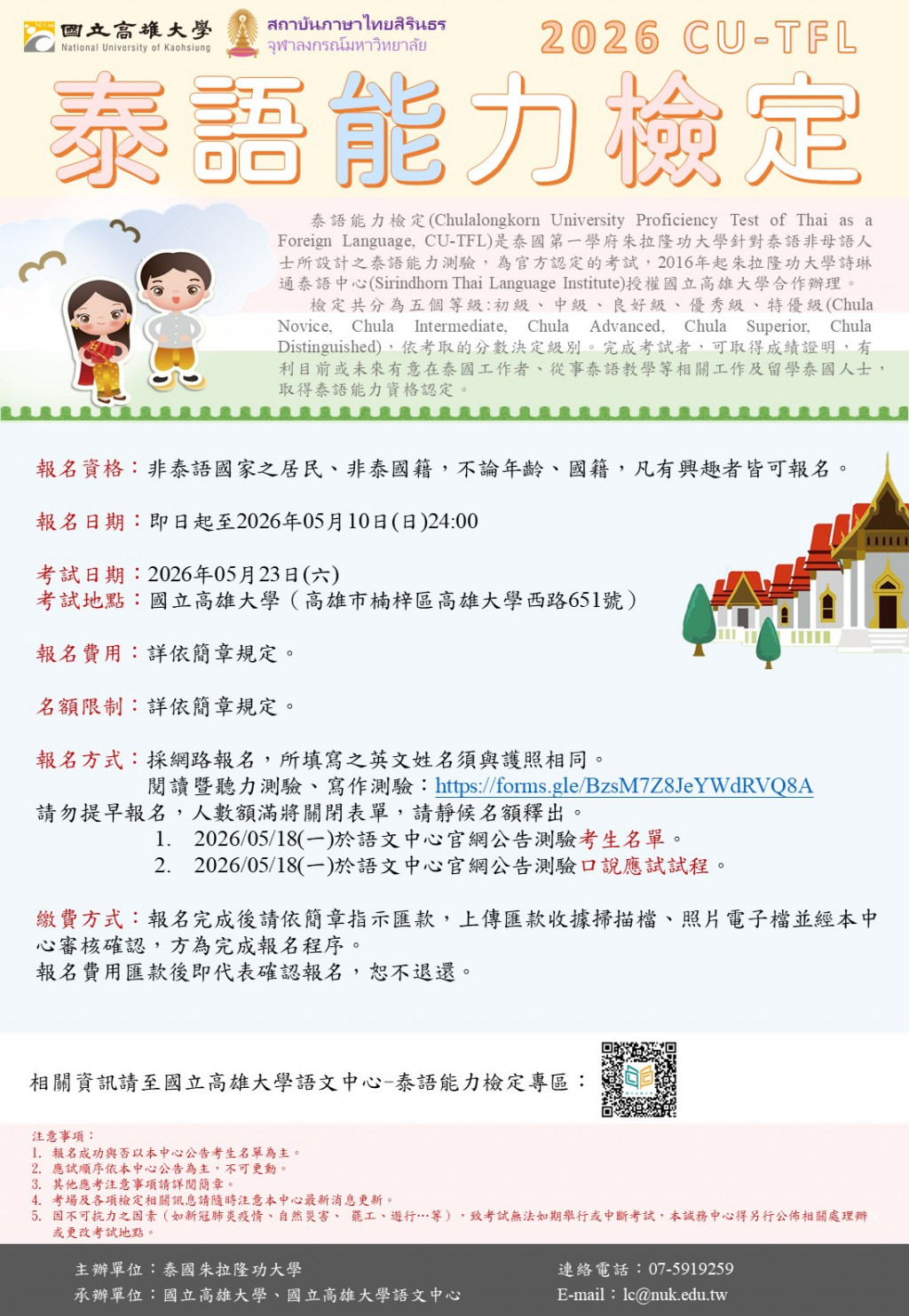 旨揭檢定係泰國朱拉隆功大學詩琳通泰語中心授權本校辦理,該檢定為官方認定考試。