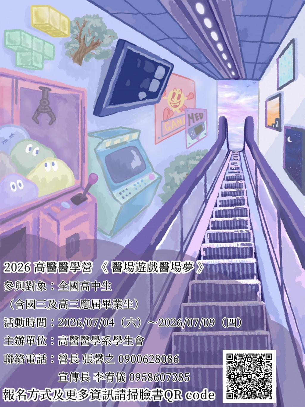 轉知:高雄醫學大學醫學系學生會擬於115年7月4日(星期六)至7月9日(星期四)舉辦醫學營活動,敬邀學生踴躍報名參加