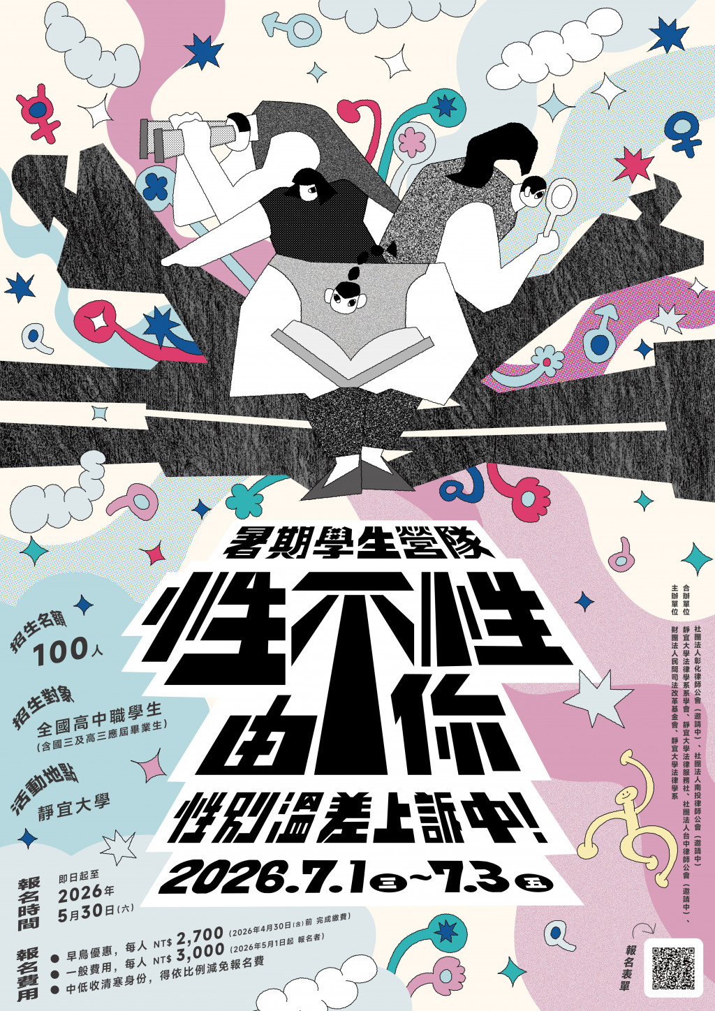 轉知:靜宜大學法律學系與財團法人民間司法改革基金會共同辦理暑期學生營隊【性不性由你—性別溫差上訴中!】開放報名中,敬邀同學踴躍報名參加