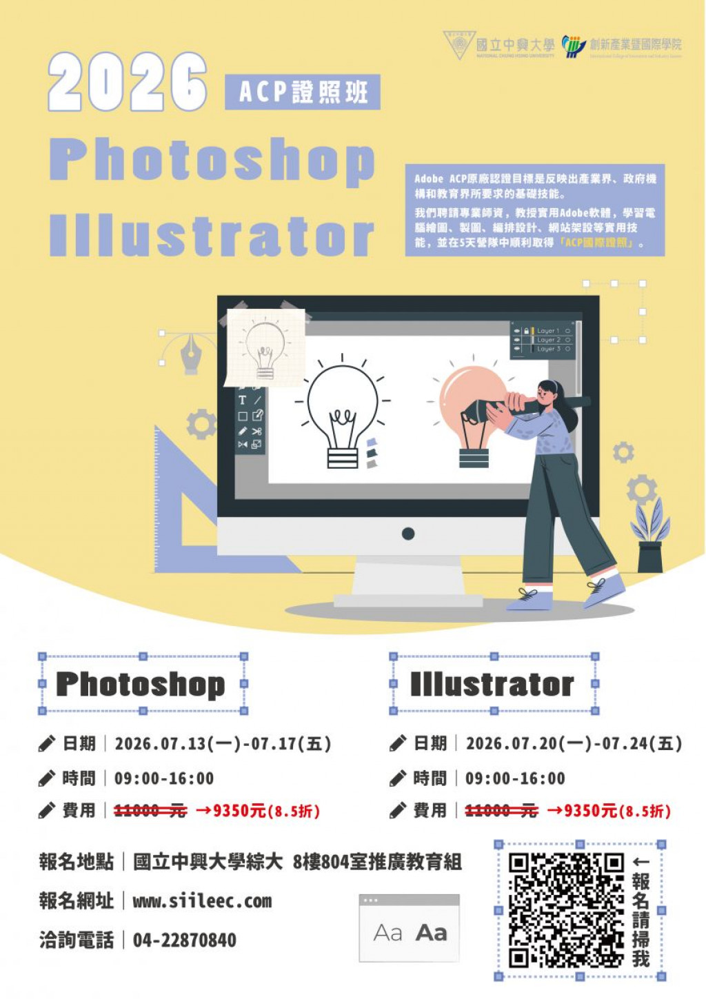 聯絡窗口:本校創新產業暨國際學院推廣教育組,電話(04)22870840。 |