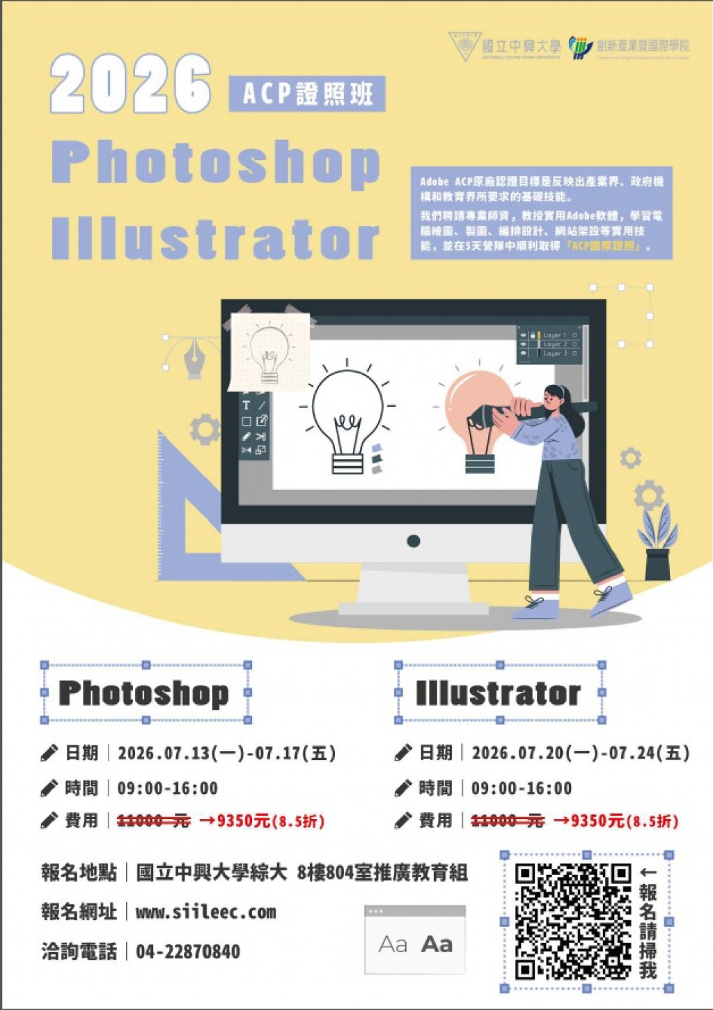 辦理115年暑期「 ACP國際證照(Photoshop及Illustrator)」課程招生資訊1份,即日起開放報名